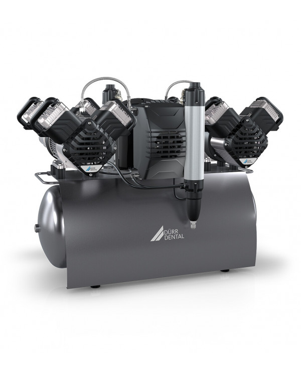 Les compresseurs DÜRR DENTAL associent qualité supérieure avec robustesse et résistance – et cela presque sans maintenance. Ils fournissent de l’air comprimé spécifique à la médecine dentaire à votre cabinet qui doit respecter des exigences élevées en matière d’hygiène. En 1965, DÜRR DENTAL avait déjà lancé des dessiccateurs pour ses groupes d'air comprimé et renoncé pour la première fois dans le monde aux normes de lubrification à l'huile dans les techniques de médecine dentaire. Fidèles à cette tradition, nous développons en permanence nos compresseurs dentaires exempts d’huile pour les cabinets dentaires, les laboratoires dentaires et les cliniques.