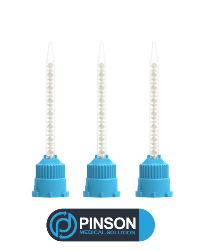 Obtenez un mélange parfaitement homogène et sans bulles de vos matériaux d'empreinte et de scellement avec les embouts mélangeurs Pinson Medical Solution. Leur spirale interne est conçue pour une activation optimale des composants tout en minimisant la perte de produit. Compatibles avec les cartouches standards, ils garantissent une application précise et fiable.